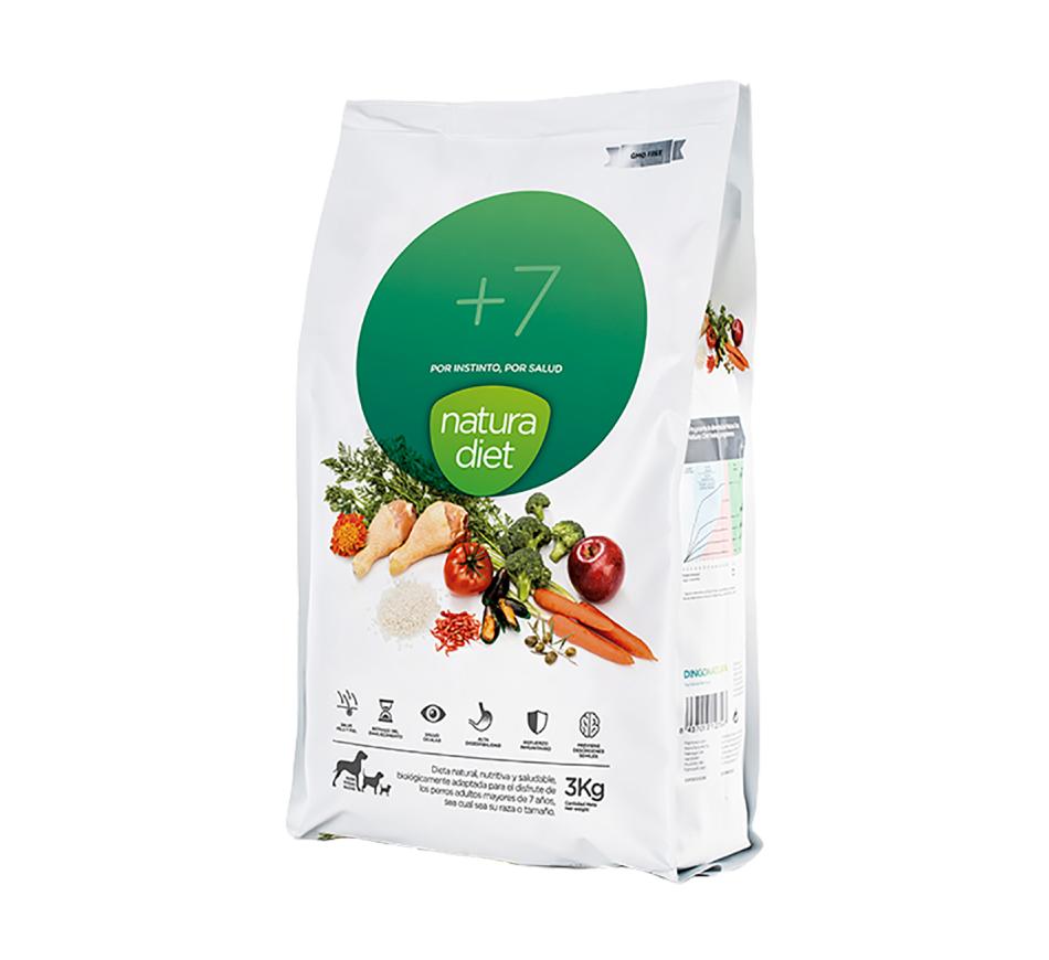 Natura Diet Cão +7 Sénior é um alimento completo natural, nutritivo e equilibrado para uma alimentação diária saudável, indicado para cães maiores de 7 anos. ND +7 adia o envelhecimento, prevê desordens senis e reforça a saúde ocular e o sistema imunitário. São ideais para uma alimentação diária e contribuem para as necessidades nutritivas do seu fiel companheiro. É portanto, um dos melhores alimentos para cães que poderá encontrar.