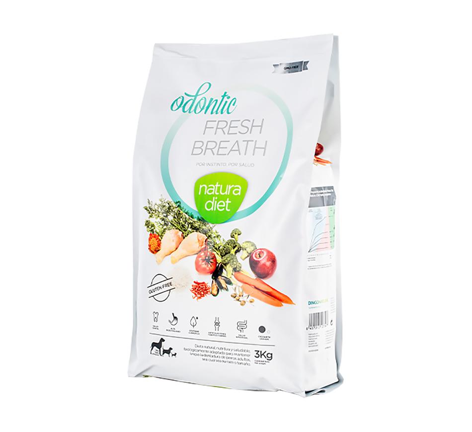 A ração Natura Diet Cão Odontic é um alimento completo e equilibrado de qualidade super premium com um gosto requintado para a alimentação diária de cães adultos de qualquer raça ou tamanho. Biologicamente adaptado para manter limpos os dentes dos cães adultos seja qual for a sua raça ou tamanho devido a sua mistura de probióticos e óleos essencias de ervas selecionadas.