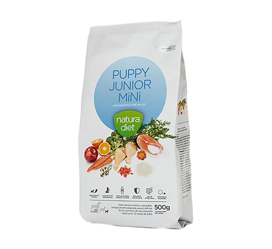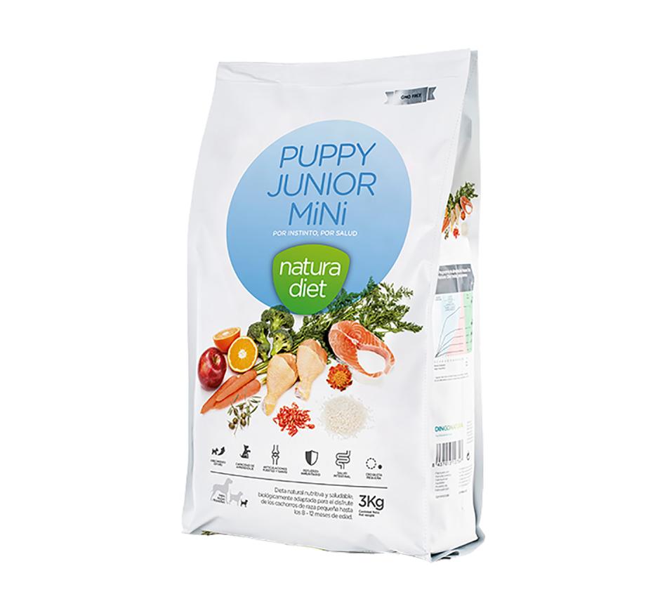 Natura Diet Cão Puppy & Junior Mini é um alimento completo e equilibrado de qualidade super premium com um gosto requintado para a alimentação diária de filhotes e mães de raças miniaturas e pequenas. Uma dieta natural e nutritiva que graças a sua alta digestibilidade, reforça o seu sistema imunitário o que favorece um desenvolvimento saudável das articulações e um ótimo crescimento.
