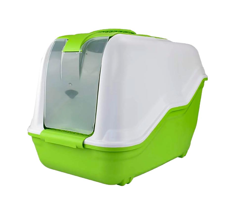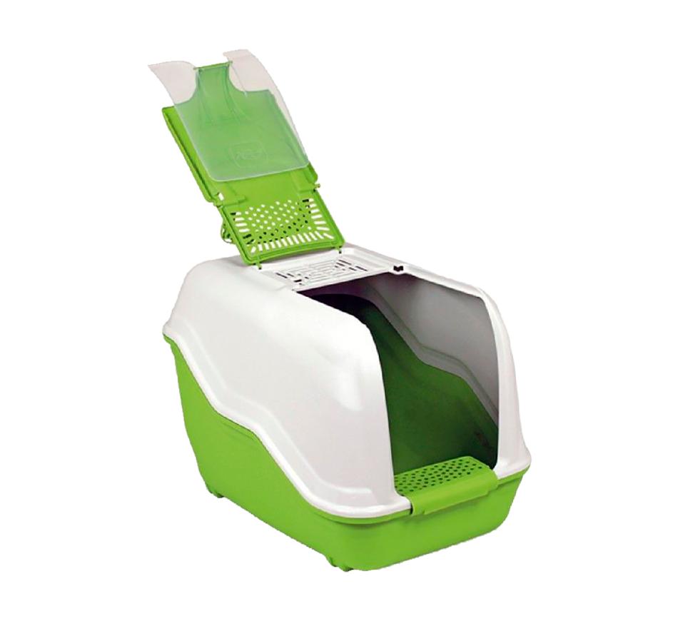 Este WC tem uma entrada ampla para o gato, além disso, inclui um filtro de carvão que eliminará os maus odores dos excrementos dos gatos e uma pá para apanhar os aglomerados. Existem 2 tamanhos de WC sendo adequado para gatos de todas as idades e de vários tamanhos, possuindo uma opção de abertura superior para facilitar a limpeza.