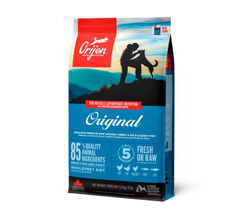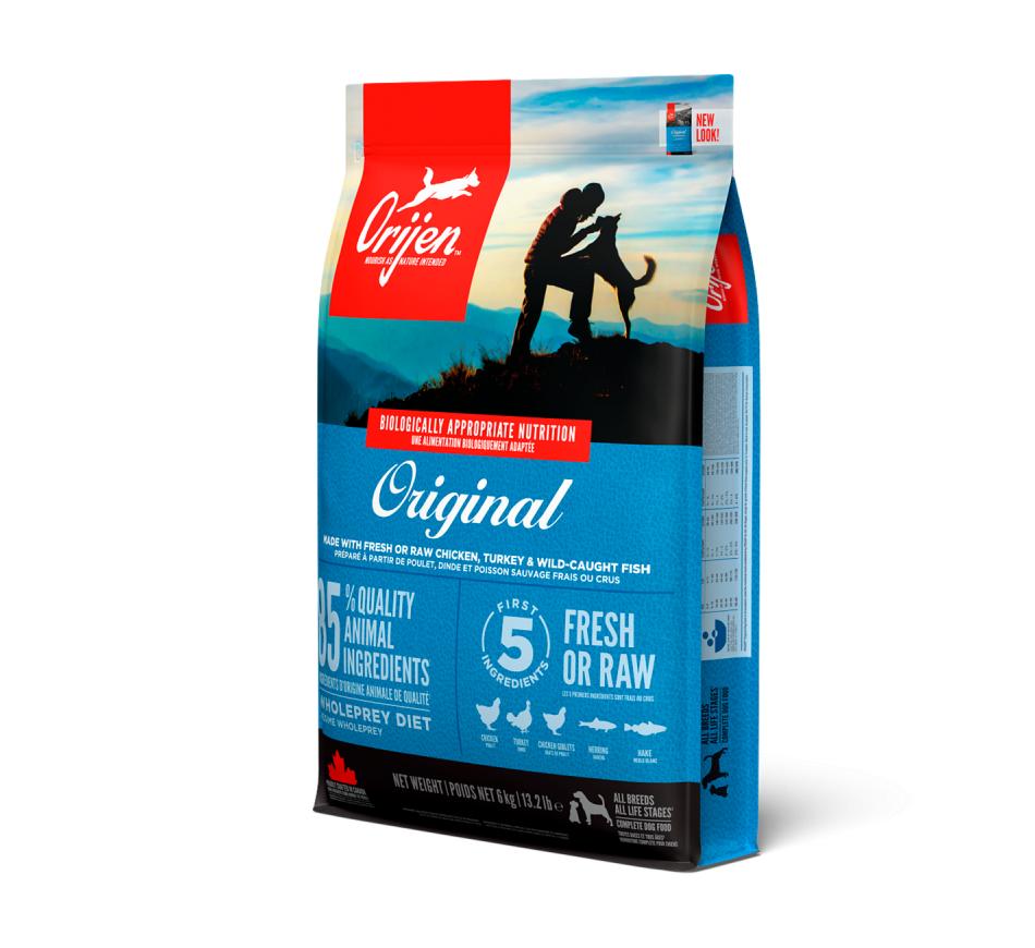 Por este motivo, o alimento Biologicamente Adequado orijen adult dog apresenta incomparáveis inclusões de frango e peru do campo, ovos recolhidos do ninho e peixe de captura selvagem, todos criados ou pescados na nossa região e entregues frescos diariamente, assegurando saúde e nutrição completa.