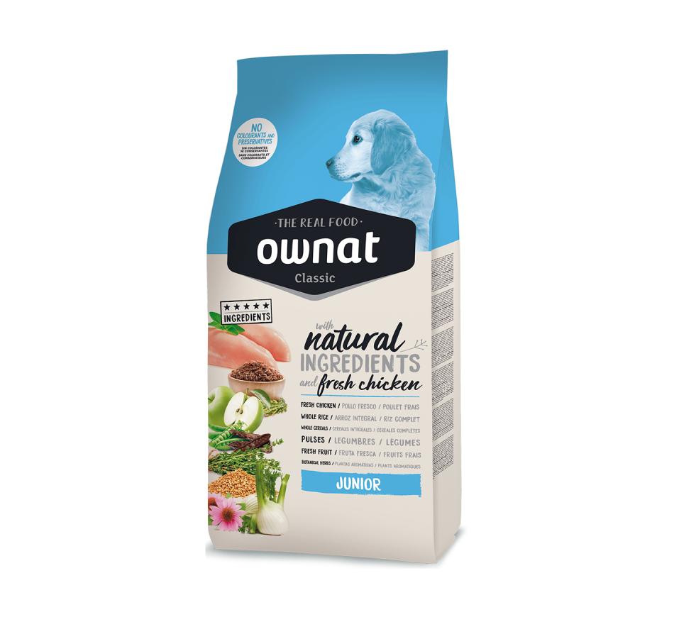 Ownat Classic Junior é rica em proteínas e ajuda a desenvolver a musculatura do seu cão graças ao elevado teor energético que fornece ao cachorro.