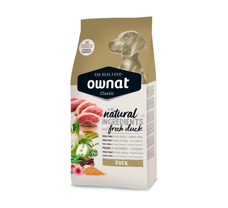 Ownat Duck é uma ração para cães adultos de todos os tamanhos e raças. Uma apetitosa carne fresca(10%) de Pato, fornece uma fonte de proteína de excelente sabor e excelente qualidade nutricional, garantindo uma dieta completa e equilibrada..