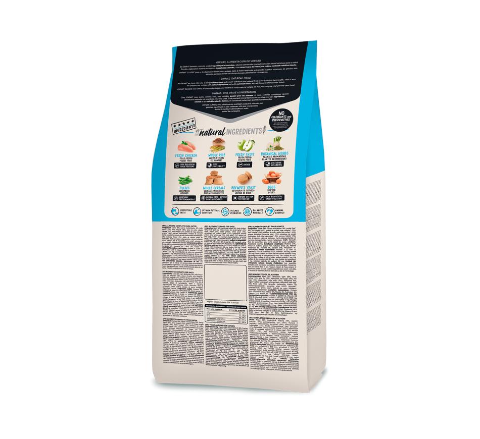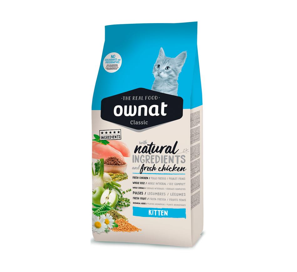 Ownat Classic Kitten não utiliza conservantes nem corantes. A sua composição favorece uma condição física ótima graças ao aporte equilibrado de proteínas e gorduras. A sua saúde está protegida com vitamina A, C, D, E e minerais, além da taurina, o elemento imprescindível para o bom funcionamento do coração dos gatos.