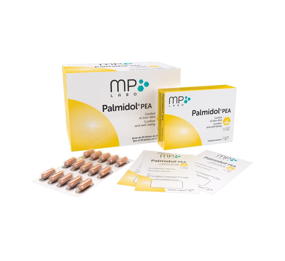 Palmidol melhora o conforto de vida dos nossos cães e gatos graças à PEA (palmitoiletanolamida), uma N-aciletanolamina produzida naturalmente pelo organismo. A PEA realmente pertence à família das aliamidas sistêmicas (derivadas de ácidos graxos) conhecidas por suas atividades anti-inflamatória e analgésica em particular , graças à sua ação facilitadora de endocanabinóides.