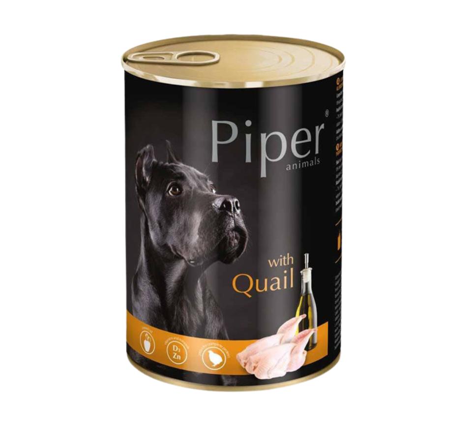 Alimento húmido com codorniz, indicado para cães adultos de todos os tamanhos. Piper é um alimento de qualidade, com proteínas de alta qualidade e carnes e produtos de origem animal de qualidade.