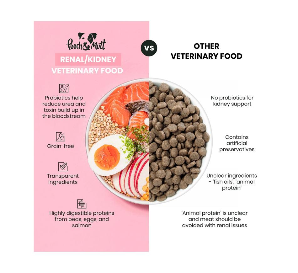 A Pooch & Mutt - Dieta Veterinária Renal é uma alimentação natural completa de prescrição veterinária, sem cereal, destinado a cães com insuficiência renal crónica.