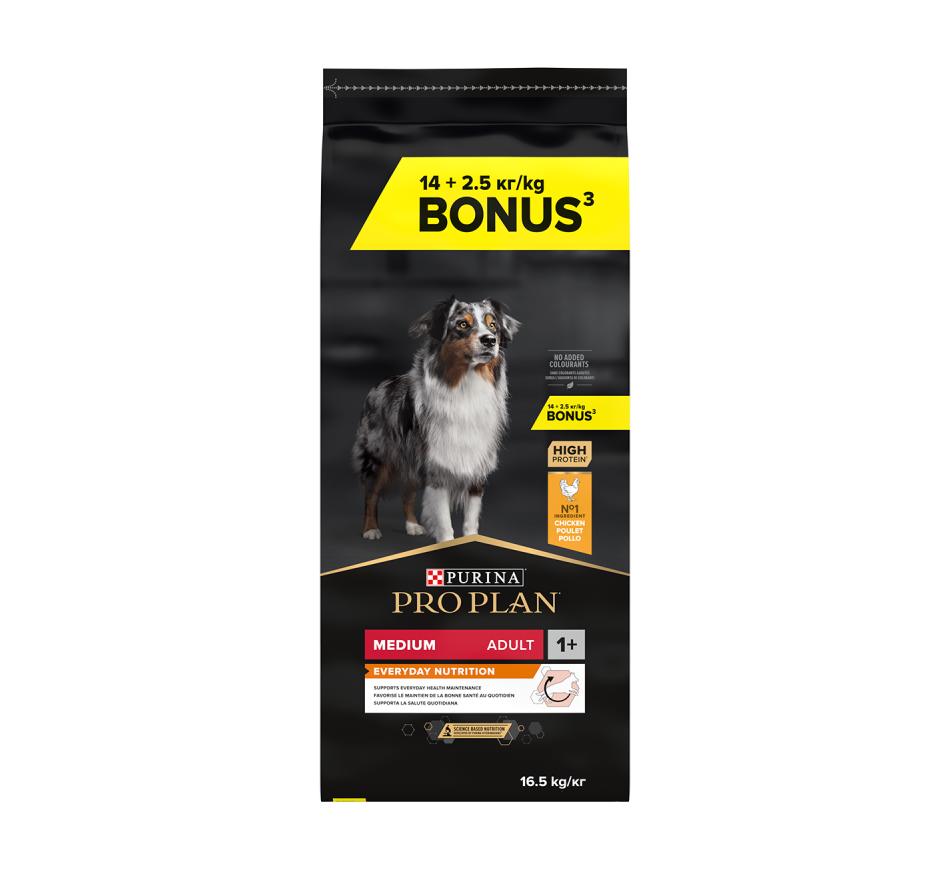 Pro Plan Cão Médio Adulto com Optibalance é um alimento seco completo para cão desenhado para as necessidades dos cães Adultos de tamanho médio.