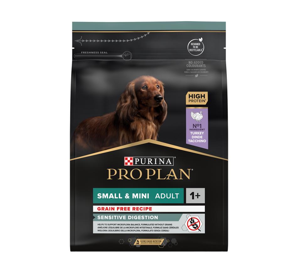 Purina Pro Plan com optidigest é um alimento altamente digerível, formulado sem cereais que fornece todos os nutrientes que o seu cão de raça pequena com digestão sensível necessita.