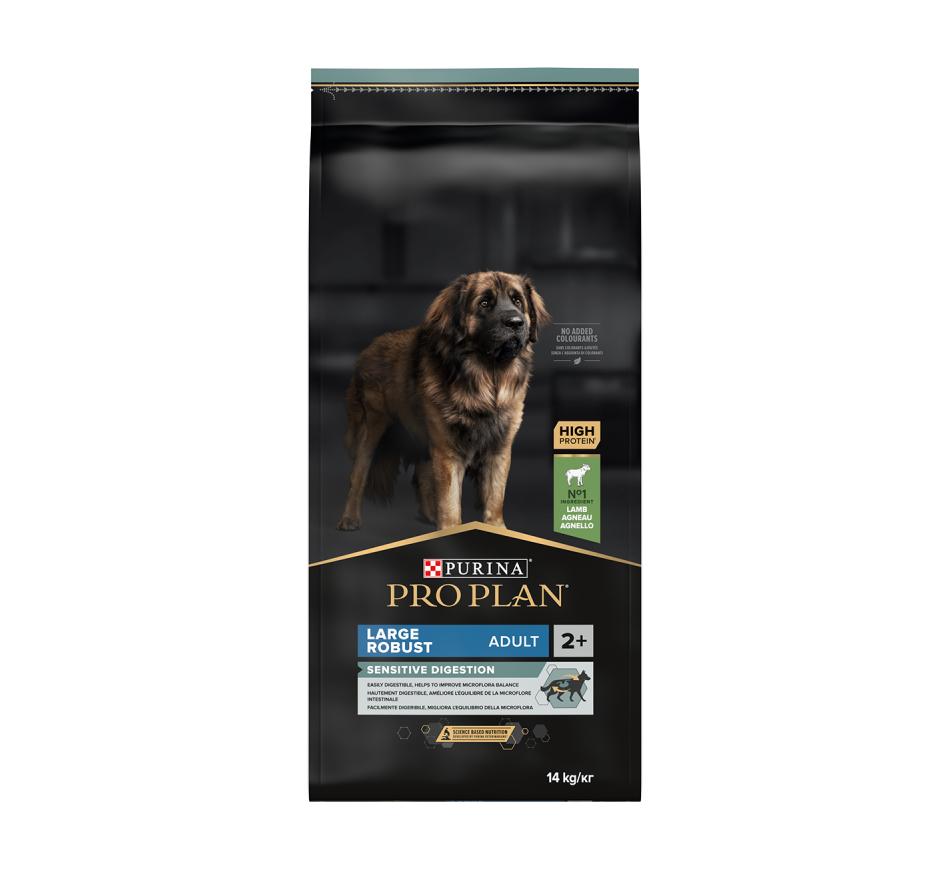 Purina Plan Large Robusto Borrego é um alimento completo para cães adultos de tamanho grande com físico robusto e digestão sensível.