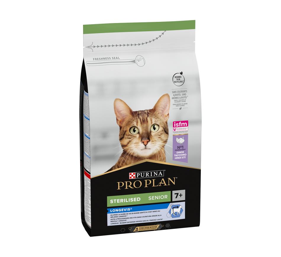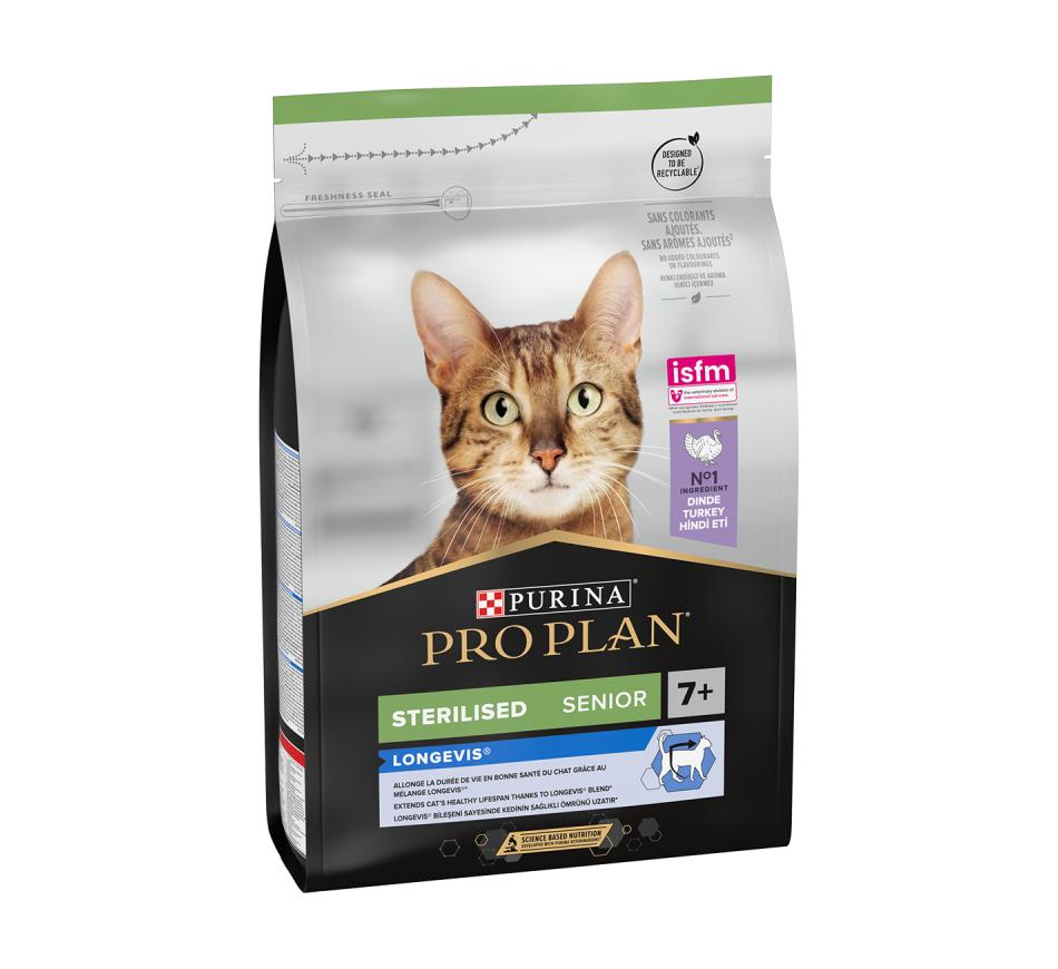 Purina Pro Plan Gato Longevis Sterilised Adult 7+ Perú, é um alimento completo para gatos adultos esterilizados que prolonga a esperança média de vida e que melhora a qualidade de vida.