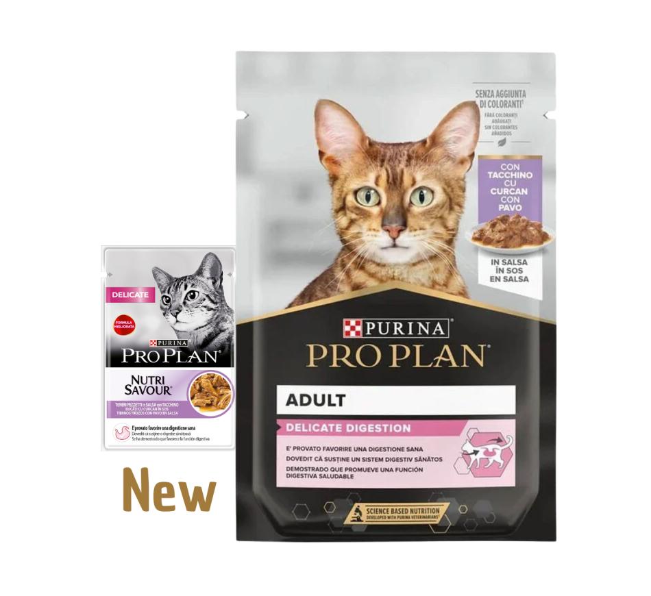 Pro Plan Nutrisavour Delicate com Peru é um alimento húmido completo e equilibrado para gatos, que contém todos os nutrientes essenciais, incluindo um pré-biótico que está provado que promove a saúde digestiva.