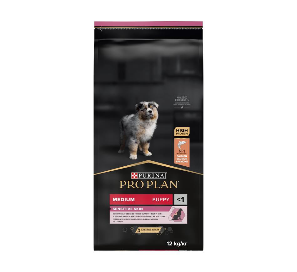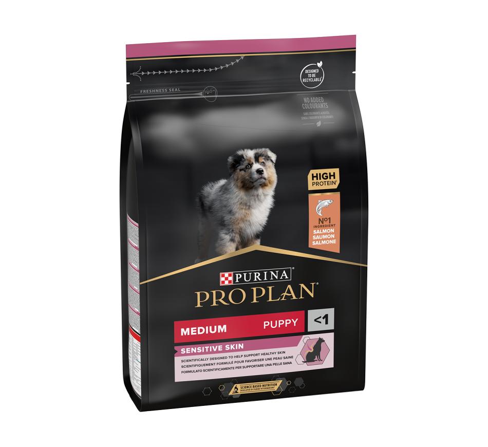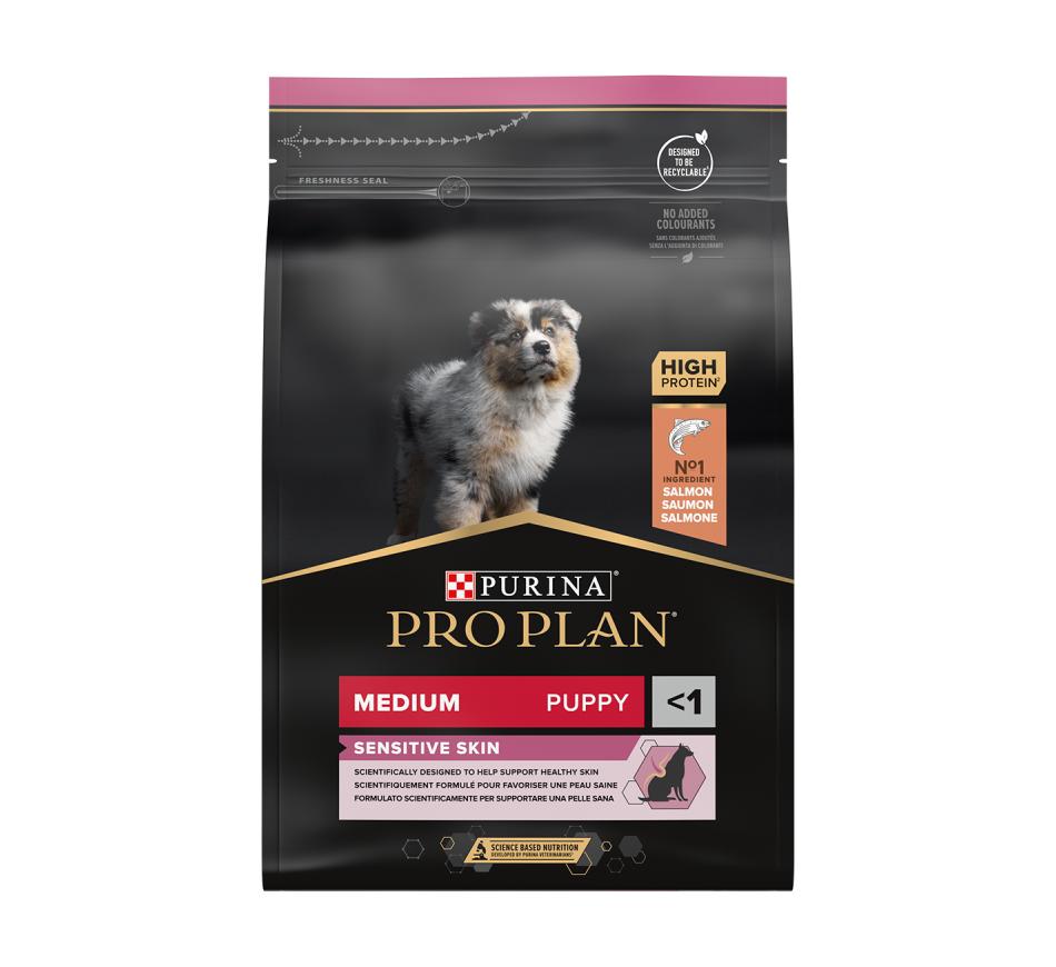 Purina Pro Plan Cachorro Médio com Optiderma é um alimento seco para cão criado especificamente para as necessidades dos cachorros que têm pele sensível, bem como para cadelas gestantes ou lactantes.