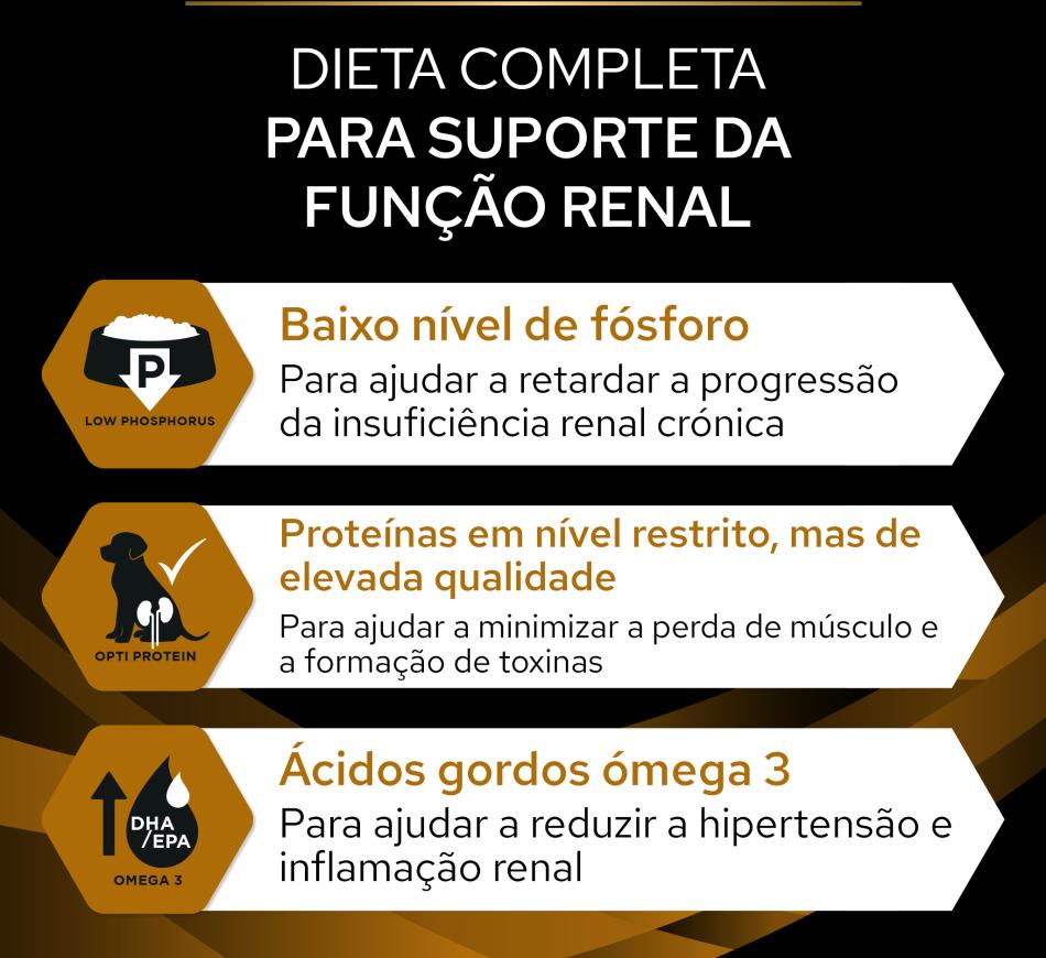 - Alimento completo dietético para cães adultos e seniores para favorecer a função renal em caso de insuficiência renal crónica.