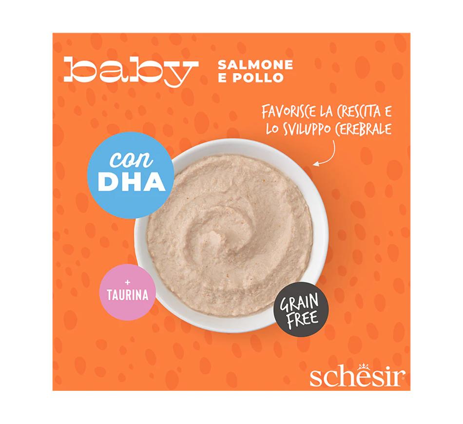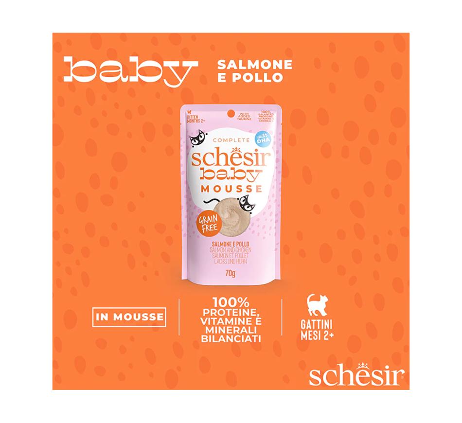 Receita específica para gatinhos rica em proteínas de salmão e frango misturadas numa mousse macia.