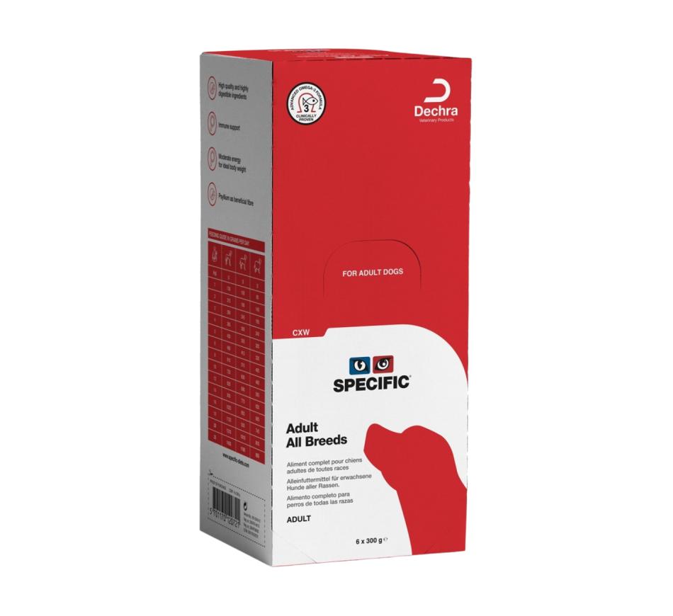 Specific Puppy CXW alimento húmido completo pode ser dado como o alimento principal ou misturado com ração seca como um deleite saboroso.