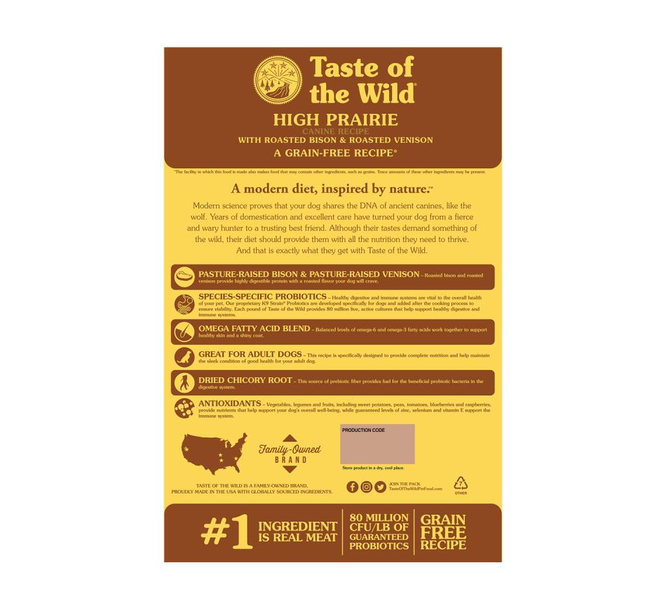 Taste of the Wild High Prairie Adult é adequada para cães de todas as raças e tamanhos, é uma ração o mais natural possível.