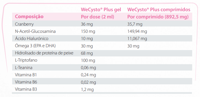 WeCysto® Plus é um alimento complementar desenvolvido para suporte da função urinária, nomeadamente no revestimento interno da bexiga e na inibição de fixação de bactérias no trato urinário.